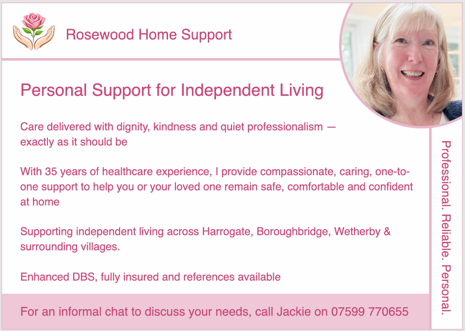 Jackie offers compassionate, caring one to one support to help you or your loved one remain safe, comfortable and confident living in their own home.